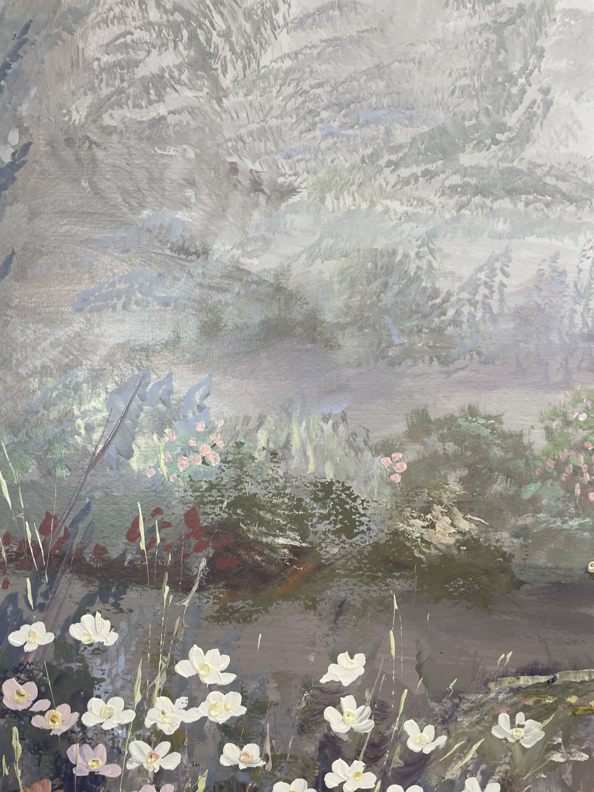 DON BOWMAN - Oil Painting on Paper - Hand Signed by Artist. 36x25 INCHES: from the retired Mitch Moore Gallery Inc, NYC. Unmatted, never framed or displayed. Image area is in very good frameable vintage condition.